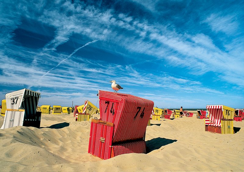 朗格奥格(Langeoog):沙滩椅与海鸥